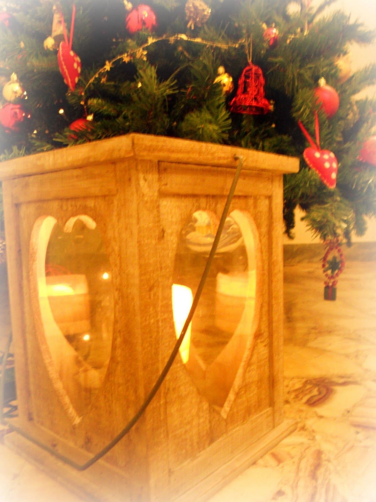 mio marito, forse preso un po' dal senso di colpa, ha chiesto al commesso se x caso avevano ancora, magari in magazzino, la lanterna ed eccola qui....che illumina ai piedi del mio alberello creando quell'atmosfera natalizia che mi scalda il cuore!