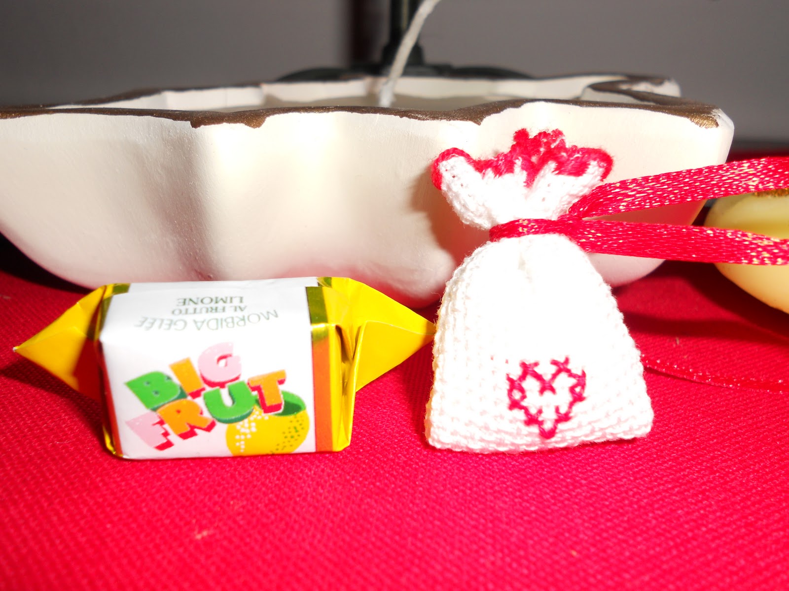 avete presente quando c'è qualcosa che vi frulla x la testa e sentite fisicamente la necessità di crearla al più presto?be io ho questa cosa da un paio di giorni ma i lavori da consegnare non me lo permettono....oddio è da star male....nei ritagli di tempo morto cioè davanti alla TV dopo cena non potevo rilassarmi e godermi il film?no presa da nevrosi creativa ho fatto questi sacchetti....la caramella è per mostrarvi le dimensioni del sacchetto....