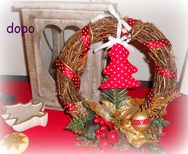 oggi pomeriggio presa da un raptus di follia creativa l'ho trasformata...che ve ne pare...sembra essere passata da "MA COME TI VESTI?" avete presente il programma in cui tutte le "bruttine" diventano principesse?be la mia ghirlanda si è meritata un restyling ed ecco cosa è successo!